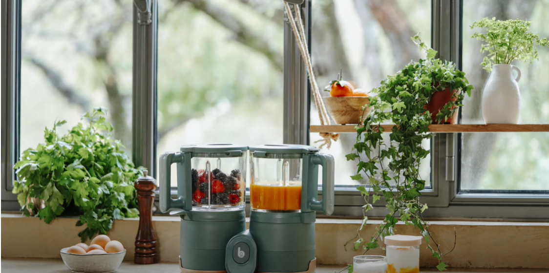 - Steams and blends to help you prepare purees, compotes and other meals for your child